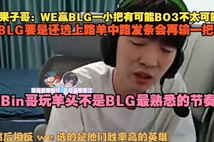 Cryin:WE贏BLG一小把有可能BO3不太可能,BLG要是還選上路羊中路發(fā)條會再輸一把,Bin哥玩羊頭不是BLG最熟悉的節(jié)奏.