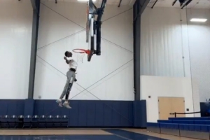 體育資訊6月27日訊 湖人在次輪第36順位選中了來自阿肯色大學(xué)的鋒衛(wèi)搖擺人阿杜-蒂耶羅。阿杜曾在社媒上傳過一段秀彈跳的視頻,視頻中他能夠親吻籃筐。