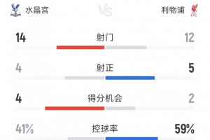 體育資訊8月11日訊 在社區(qū)盾杯決賽,利物浦與水晶宮90分鐘戰(zhàn)成2-2,雙方將進(jìn)行點(diǎn)球大戰(zhàn)。以下為雙方比賽數(shù)據(jù)對(duì)比: