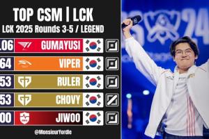 體育資訊8月11日訊 外媒Monsieur Yordle發(fā)布2025 LCK常規(guī)賽3-5輪至今分均補刀排名,具體如下。
