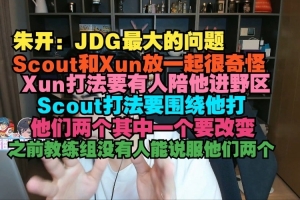 朱開:JDG最大的問題,Scout和Xun放一起很奇怪,Xun打法要有人陪他進野區(qū),Scout要圍繞他打,他們兩個其中一個要改變,教練組沒有人能說服他們兩個.
