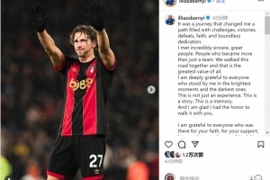 體育資訊8月12日訊 伯恩茅斯22歲中衛(wèi)扎巴爾尼轉(zhuǎn)會巴黎,他在社交媒體上發(fā)文,與伯恩茅斯告別。