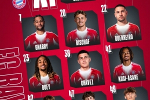 拜仁替補:26-烏爾賴希、48-克拉納克、2-于帕梅卡諾、4-若納坦-塔、6-基米希、8-格雷茨卡、9-凱恩、14-迪亞斯、17-奧利塞、27-萊默爾、36-維斯多姆-麥克、44-斯坦尼西奇