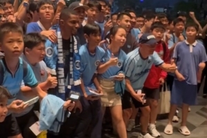 27日晚8點,韋斯利乘坐商務(wù)車抵達深圳南山香格里拉大酒店,近百名忠實球迷早已在酒店守候。