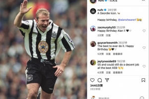 紐卡在社媒中配文寫道:一位泰恩河傳奇·??(Geordie 泰恩河:紐卡斯?fàn)柾林Q謂),生日快樂!