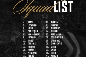 4-加蒂、5-洛卡特利、6-凱利、7-小孔塞桑、8-庫(kù)普梅納斯、9-弗拉霍維奇、10-伊爾迪茲、11-岡薩雷斯、12-阿圖爾、15-卡盧盧、16-麥肯尼、18-科斯蒂奇、19-K-圖拉姆、21-米雷蒂、23-平索里奧、24-魯加尼、25-若昂-馬里奧、26-道格拉斯-路易斯、27-坎比亞索、29-迪格雷戈里奧、30-戴維、33-賈洛、40-魯希、44-托馬索-曼奇尼、45-溫特
