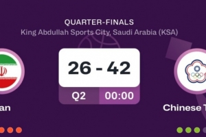 體育資訊8月14日訊 男籃亞洲杯1/4決賽,中國臺北半場42-26領先伊朗。