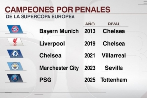 據(jù)ESPN統(tǒng)計(jì),巴黎是歐超杯歷史第5支通過點(diǎn)球大戰(zhàn)奪冠的球隊(duì),此前4支是拜仁(2013)、利物浦(2019)、切爾西(2021)和曼城(2023)。