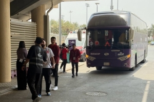 媒體人@球圈趙探長曬照,中國隊(duì)賽前提前兩個多小時便抵達(dá)球館,比對手韓國隊(duì)早得多。
