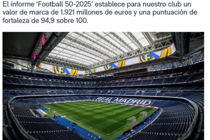 根據(jù)品牌評(píng)估機(jī)構(gòu)Brand Finance發(fā)布的《Football 50-2025》年度報(bào)告,皇家馬德里連續(xù)第二年成為全球最具價(jià)值足球品牌,并連續(xù)第四年保持全球最強(qiáng)足球品牌地位。我俱樂部品牌價(jià)值增長14%,創(chuàng)下19.21億歐元的新紀(jì)錄。