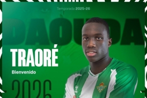 達烏達-特勞雷現(xiàn)年19歲,法國中場,去年夏天從尼斯加盟南安普頓,上賽季外租瓦朗謝納效力,共為該隊出戰(zhàn)27場法丙。今天,南安普頓官方宣布,達烏達-特勞雷租借加盟西甲貝蒂斯,租期一個賽季。