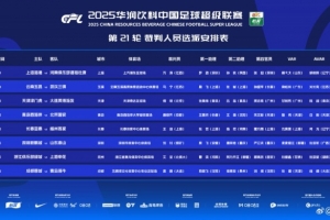 體育資訊8月15日訊 中超官方公布第21輪裁判安排,艾堃執(zhí)法浙江隊(duì)vs申花,本輪聯(lián)賽無(wú)外籍裁判執(zhí)法。