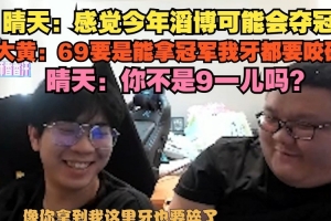 晴天:感覺今年滔博可能會(huì)奪冠,大黃:69要是能拿冠軍我牙都要咬碎,晴天:你不是9一兒嗎?