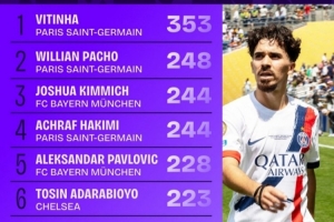 體育資訊6月28日訊 本屆世俱杯小組賽階段全部戰(zhàn)罷,據(jù)Squawka的數(shù)據(jù)統(tǒng)計,巴黎圣日耳曼中場維蒂尼亞完成353次傳球,斷檔式領(lǐng)先。