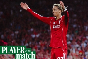 此役利物浦新援?;倏藗魃浣ü?,利物浦官方宣布,?;倏水斶x本場比賽隊內最佳球員。