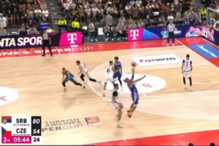 約維奇底線發(fā)球,約基奇接應(yīng)右手單手將球往后一甩,妙傳阿夫拉莫維奇。