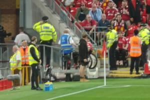 但球場(chǎng)中的警察行動(dòng)非常迅速,有球迷拍到,這位輪椅球迷很快被要求離場(chǎng),他在眾人的注視下灰溜溜的被志愿者推出通道。