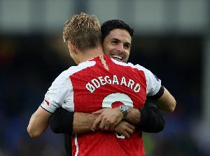 體育資訊8月16日訊 本周末對(duì)陣曼聯(lián)的比賽前,阿森納主帥阿爾特塔高度贊揚(yáng)了球隊(duì)隊(duì)長(zhǎng)厄德高的領(lǐng)導(dǎo)能力。2022-23賽季以來(lái),挪威人一直擔(dān)任隊(duì)長(zhǎng)一職。