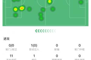 約克雷斯在這60分鐘內(nèi),0射門(mén),11次丟失球權(quán),觸球21次,傳球成功率44.4%,爭(zhēng)頂6次成功1次,對(duì)抗7次贏得2次。