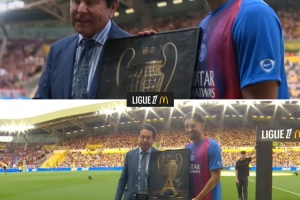 體育資訊8月18日訊 在南特對(duì)陣巴黎的首輪法甲聯(lián)賽開始前,南特主席向巴黎贈(zèng)送了特別的禮物。