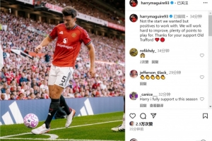 馬奎爾社媒曬出比賽照片,并寫道:“這不是我們想要的開局,但也有積極的因素可以汲取,我們會努力改進(jìn),還有大量的積分可以爭取。感謝大家在老特拉福德的支持。”