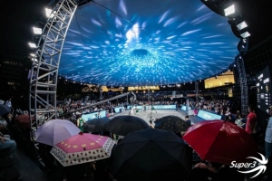 當籃球的激情與油罐藝術中心的文藝產(chǎn)生碰撞,2025賽季超三聯(lián)賽的揭幕戰(zhàn)便注定與眾不同!盡管驟雨突襲,卻澆不滅球迷的熱情——場邊五顏六色的雨傘連成一片,歡呼聲穿透雨幕,與球員的每一次交鋒、每一記遠投共振。冒雨高舉手機記錄精彩瞬間的球迷們,才是這場全民籃球盛宴的真正主角。
