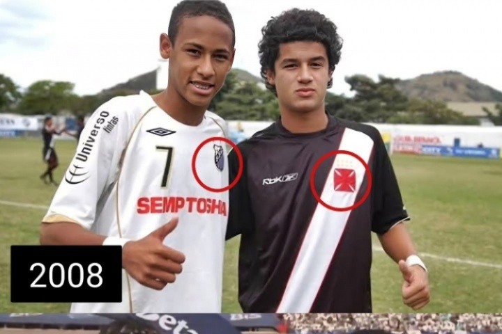2008年?:兩位16歲的摯友在巴西杯兵戎相見,內馬爾身披桑托斯戰(zhàn)袍,庫蒂尼奧代表瓦斯科達伽馬,彼時皆是巴西足壇耀眼新星。