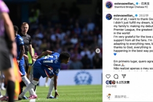 賽后,埃斯特旺更新社媒向球迷致謝,并曬照紀念自己英超首秀。