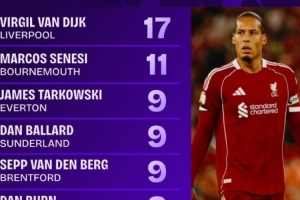 體育資訊8月20日訊 新賽季英超首輪比賽已經(jīng)結束了全部爭奪,根據(jù)Squawka的數(shù)據(jù)統(tǒng)計,利物浦中衛(wèi)范迪克是本輪解圍次數(shù)最多的球員。