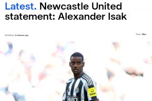 我們明確回應(yīng):亞歷山大-伊薩克仍處于合同期內(nèi),且俱樂部官員從未承諾他可在今夏離開紐卡斯?fàn)柭?lián)隊(duì)。