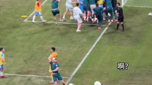 賽后有球迷拍到劉殿座站在原地有些落寞,鐘義浩過來跳起來抱劉殿座。