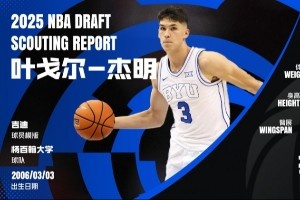 大學(xué)助理教練4號(其所在球隊(duì)與楊百翰大學(xué)交過手):“第一眼就被他的身高震撼,實(shí)際接近2.044米(注:芝加哥聯(lián)合試訓(xùn)的體測為2.038米)。雖然瘦削,但身材和臂展擺在那里。我們當(dāng)時(shí)的策略就是對他實(shí)施高壓防守,不斷施壓。他確實(shí)能做出所有閱讀和雙手傳球,特別是面對重復(fù)防守策略時(shí)。但我們變換戰(zhàn)術(shù)包夾擋拆、繞掩護(hù)追防后,他就有些掙扎。屬于約什-吉迪那類球員,投籃應(yīng)該會越來越好。NBA球探問我擔(dān)憂什么?聯(lián)盟的身體對抗強(qiáng)度會是他最大的坎,現(xiàn)在身材太單薄了。但只要適應(yīng)這點(diǎn),以他的身高、投射和精英級傳球水準(zhǔn),至少能成為優(yōu)質(zhì)的替補(bǔ)控衛(wèi)。”