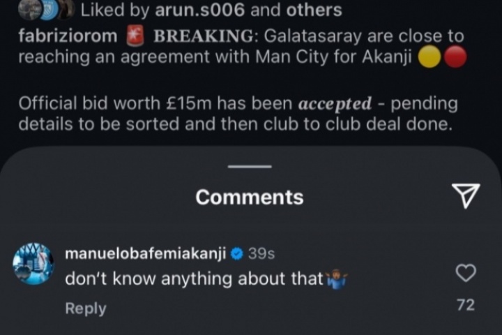 阿坎吉出現(xiàn)在羅馬諾的ins評論區(qū),他評論道:我什么都不知道。