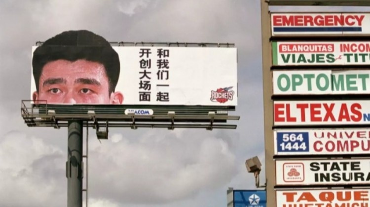 2002年,火箭隊在休斯敦全市張貼了印有姚明形象的廣告牌,并配以球隊的中文口號——“開創(chuàng)大場面”(用中文書寫)。