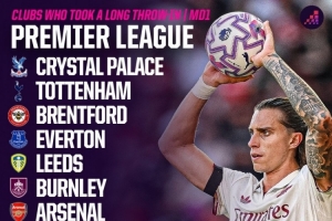 Opta指出,本賽季英超首輪共有11支球隊至少向?qū)Ψ浇麉^(qū)發(fā)出一次長距離界外球,而上賽季首輪只有4支球隊這樣做。