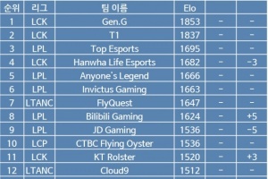 體育資訊8月22日訊 韓網粉絲根據目前比賽的賽果,排列出了全球戰(zhàn)隊戰(zhàn)力榜,LCK前四GEN、T1、HLE、KT,LPL前四TES、AL、iG、BLG。