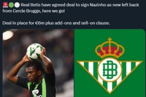 體育資訊8月22日訊 名記羅馬諾Here We Go確認,皇家貝蒂斯即將600萬歐元簽下色格拉布魯日邊后衛(wèi)弗拉維奧-納齊尼奧。