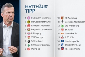 馬特烏斯、哈曼、穆斯塔菲全部看好拜仁奪冠,馬特烏斯預(yù)測多特蒙德、法蘭克福、勒沃庫森排名第二至第四,霍芬海姆和海登海姆則是慘遭降級。