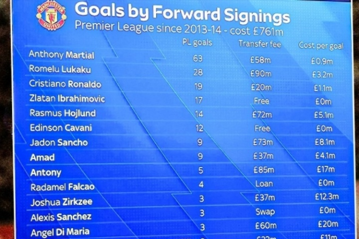 自13/14賽季以來,曼聯(lián)花費7.61億鎊簽了14名前鋒,一共攻入191粒英超進球。而薩拉赫2017年加盟利物浦,他至今已經(jīng)攻入了187粒英超進球。