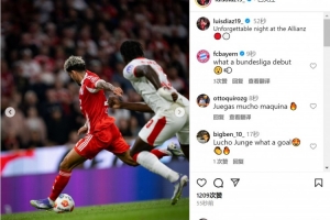 迪亞斯社媒曬出比賽照片,配文:“安聯(lián)球場的難忘夜晚?!?/p>