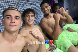 加維賽后更新社媒動(dòng)態(tài),曬出與阿勞霍、庫(kù)巴西在更衣室的合照,慶祝球隊(duì)取勝。