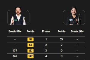其中在第四局肖國棟轟出職業(yè)生涯第二桿147!這也是本賽季第6桿、歷史第223桿147。