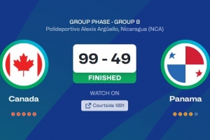 體育資訊8月24日訊 今天結(jié)束的一場男籃美洲杯小組賽,加拿大男籃99比49大勝巴拿馬男籃50分。