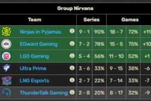 體育資訊8月24日訊 在今日的LPL第三賽段涅槃組比賽上,EDG以2-0的比分橫掃LNG,至此涅槃組前四名次已經確定,分別是NIP、EDG、LGD以及UP!