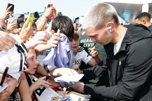 皇馬球員們已經抵達奧維耶多,準備參加這場比賽,他們受到當?shù)厍蛎缘臒崃覛g迎,皇馬官方社媒曬出球員們簽名的照片。