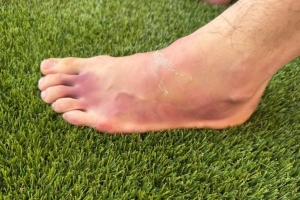從圖片中可以看出,商竣程左腳淤血嚴(yán)重。