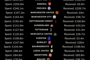 體育資訊8月26日訊 The Athletic網(wǎng)站統(tǒng)計(jì)了截至目前英超各俱樂部今年夏窗的轉(zhuǎn)會(huì)支出/收入情況,具體數(shù)據(jù)如下: