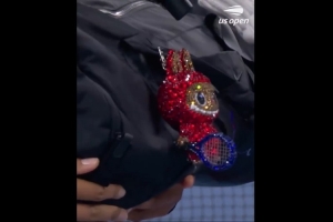 體育資訊8月27日訊 美網(wǎng)女單首輪,大坂直美2-0明尼恩晉級,她在賽后展示自己的labubu。