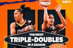 此外,托馬斯生涯至今18次三雙,WNBA至今只出現(xiàn)過(guò)47次三雙,托馬斯一人占到接近4成。