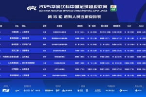 體育資訊6月29日訊 日前,中超聯(lián)賽第16輪裁判選派結(jié)果公布,具體安排如下:
